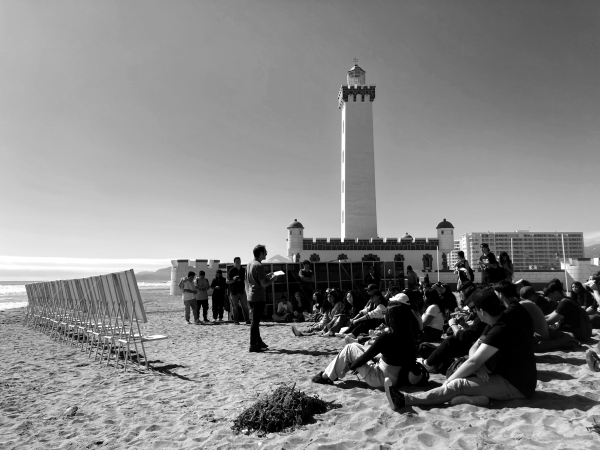 Los organizadores destacaron la importancia de este momento como un cambio significativo en la vida de los estudiantes, en el que se empieza a tomar conciencia de uno mismo y del entorno, comprendiendo el mundo de una manera nueva. Guillermo Ávila, docente de Arquitectura, compartió: “Para celebrar este cambio y dar la bienvenida a las y los nuevos integrantes de nuestra carrera, este año quisimos reunirnos en el borde costero de la ciudad, alrededor y en el acto de cruzar una instalación que funcionara como portal y que físicamente representara esta nueva perspectiva. Para concluir y dejar registro de lo sucedido, terminamos realizando un dibujo comunitario de 12 metros de extensión, pensando en esto como un momento detonante y significativo para la vida de todos los presentes.” Guillermo Ávila, Docente de la Carrera de Arquitectura”.