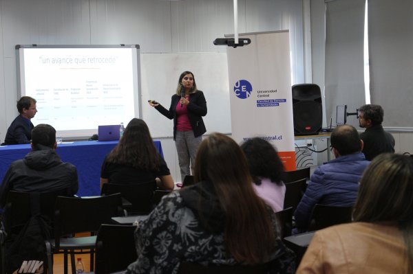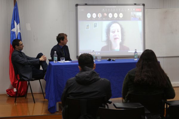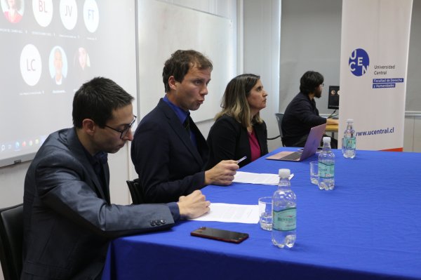 El panel de conversación lo integraron Mylene Valenzuela, directora del área de Derecho Público y Humanidades de la Facultad de Derecho y Humanidades (Facdeh); Katherine Becerra, académica de derecho público de la Universidad Católica del Norte y el académico investigador de Facdeh, Federico Szczaranski. La instancia estuvo moderada por el docente de Derecho, Michele Zezza.
