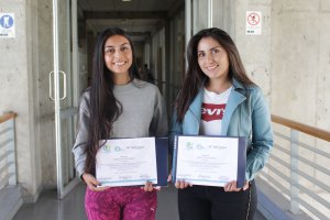 Rosario Alegría y Camila Toro, ambas estudiantes de quinto año de la carrera de Derecho de Universidad Central La Serena formaron parte del grupo que viajó a Colombia.