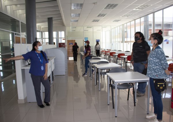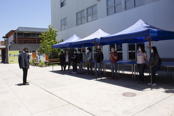 Cumpliendo un estricto protocolo salud, los/as jóvenes recorrieron algunos espacios de la universidad, instancia que les permitió compartir con sus compañeros e interiorizarse de las formas de funcionamiento y los servicios de la UCEN.