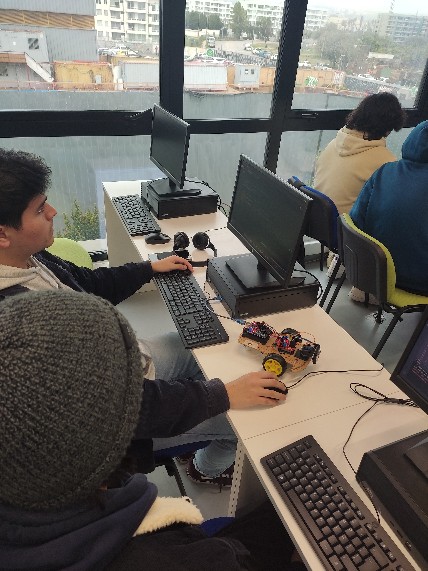 Por otro lado, las y los alumnos de cuarto año de la asignatura de Automatización se enfocaron en resolver conflictos que involucraban el control automático de un robot móvil de tres ruedas. Esta experiencia les permitió comprender cómo los robots pueden ser utilizados para resolver problemas reales e insertarse en la sociedad.