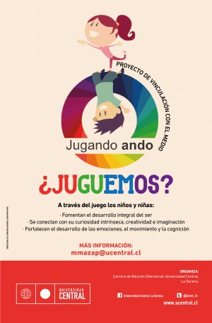 Jugando Ando ¿Juguemos? Es el nombre del proyecto de Vinculación con el Medio adjudicado el año pasado por la carrera de Pedagogía en Educación Diferencial de la Sede y que hoy -en su primera etapa de desarrollo- busca transformarse en una iniciativa que apuesta por el fortalecimiento de los espacios y tiempos de juego libre guiado de niños en los establecimientos educacionales de la Región de Coquimbo.