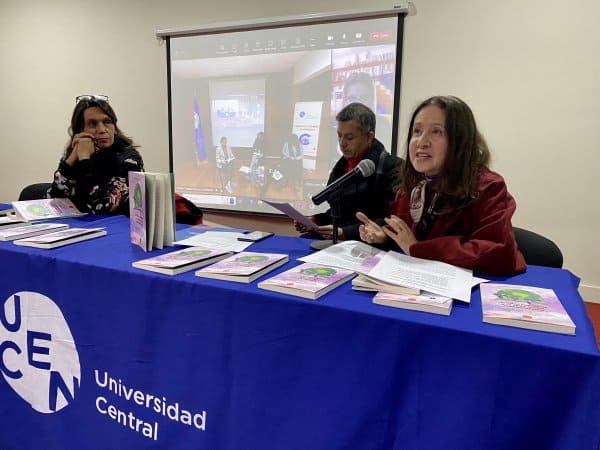 El encuentro también conectó a las autoras de varios de capítulos que se encontraban presentes vía online entre ellas: Sandra Estrada, de la Universidad de Guanajuato; Malena Lenta y Roxana Longo, de la Universidad de Buenos Aires; Daniela Osorio-Cabrera, de la Universidad de la República de Uruguay y Gabriela Veras, además de la directora y director del Magíster que desarrollaron el capítulo sobre Pedagogía feminista.