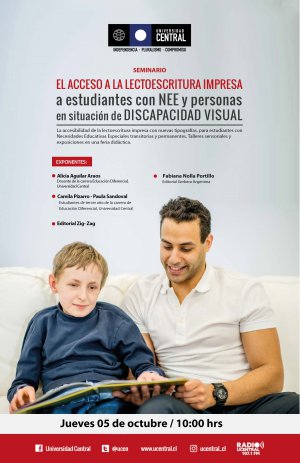 En dependencias del Salón Auditorio de la Sede se llevará a cabo el Seminario: "El Acceso a la lectoescritura impresa a estudiantes con NEE y personas en situación de Discapacidad Visual", desarrollado por el Programa de Desarrollo Social de la Universidad.