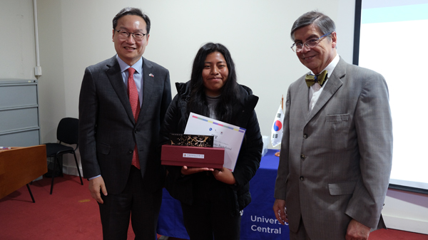 En la ceremonia de premiación, Eloísa Morales y Débora Cáceres fueron reconocidas con menciones honrosas, recibiendo bufandas de Dokdo como premio. Asimismo, María José Espinoza, Carla Roble y Natalia Huilipán se destacaron al obtener el primer, segundo y tercer lugar, respectivamente, ganando becas para estudiar coreano en este instituto durante el próximo año, además de un exclusivo set de tazas del Museo Nacional de Corea, gentilmente proporcionado por la Embajada de Corea.
