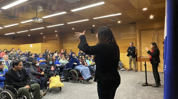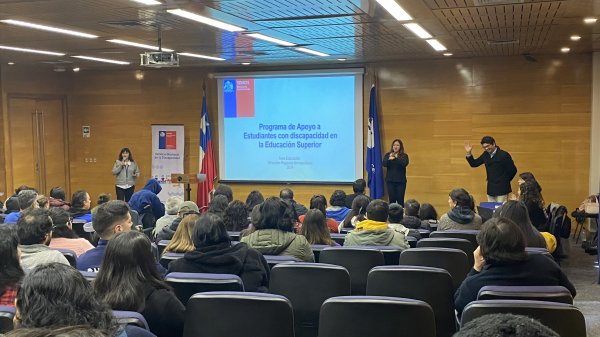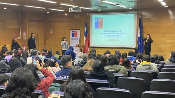 La Universidad Central de Chile fue el lugar que el Servicio Nacional de Discapacidad (SENADIS) regional metropolitano escogió para entregar los fondos de ayuda técnica y apoyos a la educación superior a 132 estudiantes de la región. La ceremonia, que se realizó el lunes 3 de junio en el Auditorio Carlos Blin Arriagada comenzó con las palabras de bienvenida de la directora de Desarrollo Académico de la Universidad, Francisca Infante, quien advirtió que “la tarea principal de una universidad es difundir conocimiento que ya existe a través de sus carreras y también tiene la tarea de crear nuevo conocimiento a través de la investigación”. Desde 2018, “es un derecho el acceso a la educación y es responsabilidad de la universidad el dar acceso”, proceso desafiante ya que “estamos aprendiendo”, dice. “La institución, las personas que trabajamos en la universidad, los estudiantes están aprendiendo a cómo estudiar una carrera en la universidad cuando tengo alguna discapacidad. La política pública está aprendiendo, en el caso de SENADIS, cómo hacemos para implementar esta idea de que la universidad sea equitativa para todos y todas”. La autoridad agradeció la presencia del Servicio y destacó el orgullo que genera para la institución este vínculo.