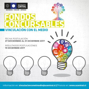 La Dirección de Vinculación con el Medio con el propósito de fomentar y apoyar la realización de actividades que aporten el proceso formativo y al desarrollo de competencias propias del sello institucional, convoca a docentes, egresados y estudiantes de la Universidad Central de Chile a postular sus proyectos.