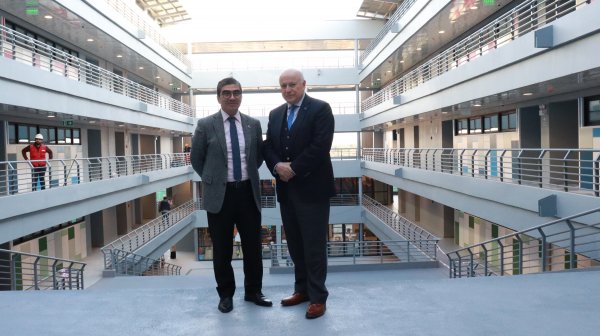 Para concluir su visita, el Rector recorrió el nuevo edificio de la universidad, obra emblemática materializada bajo la actual gestión universitaria. En esta moderna infraestructura, que pronto abrirá sus puertas, constató los avanzados laboratorios, amplias salas de clases y nuevos espacios de encuentro académico. Esta inspección permitió a la autoridad no solo apreciar el significativo crecimiento de la sede, sino también reafirmar el compromiso de la institución por ofrecer instalaciones de vanguardia para sus estudiantes, docentes y funcionarios. Este moderno inmueble representa la segunda etapa de un ambicioso proyecto de expansión, que suma más de 16 mil metros cuadrados construidos, consolidando la visión de la universidad de fortalecer su presencia regional y proporcionar entornos educativos de primer nivel."