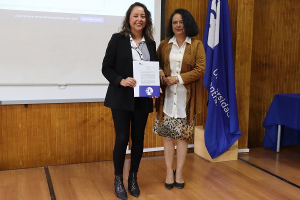 Una de las homenajeadas fue Evelyn Caro, académica y Jefa de la Unidad de Género y Diversidad, quien expresó su gratitud hacia la universidad, la comunidad académica y sus seres queridos. En su discurso, resaltó la significación que tiene esta distinción para cada una de las académicas, compartió su experiencia y trayectoria en el ámbito académico y laboral como mujer, la cual en muchas ocasicones y en especial en un estudio de doctorado, significa mucho sacrificio y un trabajo a veces solitario. Finalmente valoró oportunidad como estas, las cuales deben tener continuidad y ser replicadas, expresó.