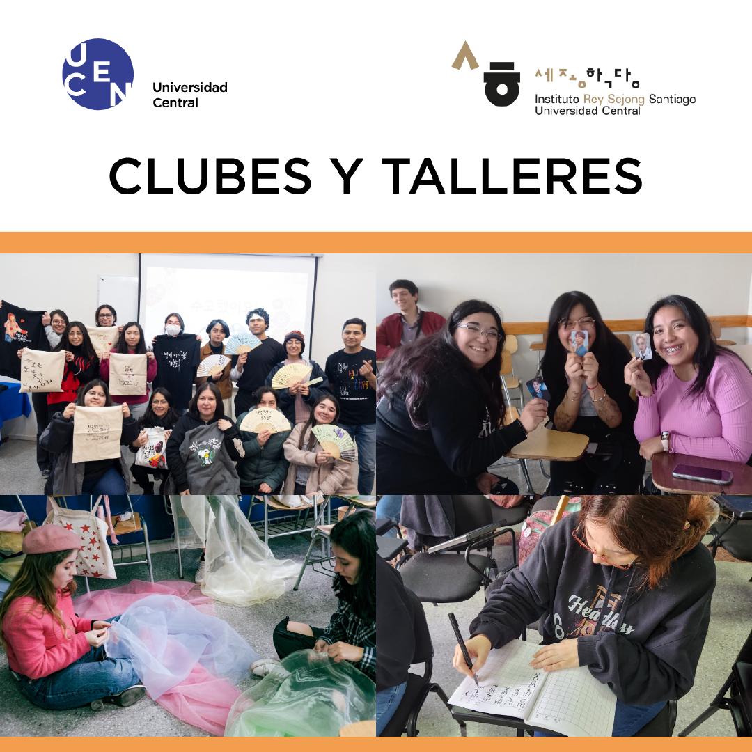 CLUBES Y TALLERES Instancias para fortalecer y practicar los contenidos que se aprenden en clases y diversas actividades extracurriculares que contribuyen al aprendizaje del idioma coreano. Estos talleres y clubes varían cada semestre. Algunas de las actividades que se han realizado son: Danza Tradicional, Cuentos Coreanos, Cultura Coreana Tradicional, Canciones OST, Caligrafía, Hanbok, Poesía, Literatura Coreana, Club de Conversación, entre otros. |