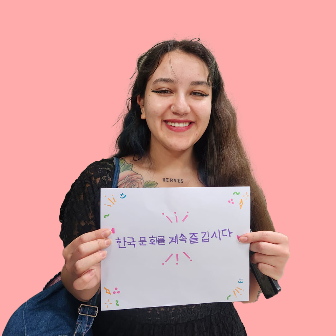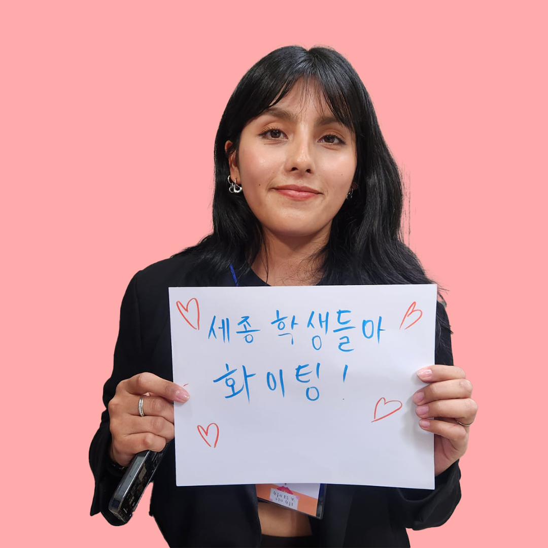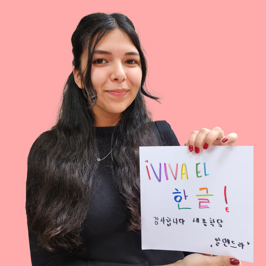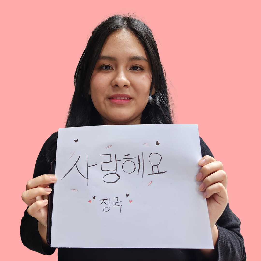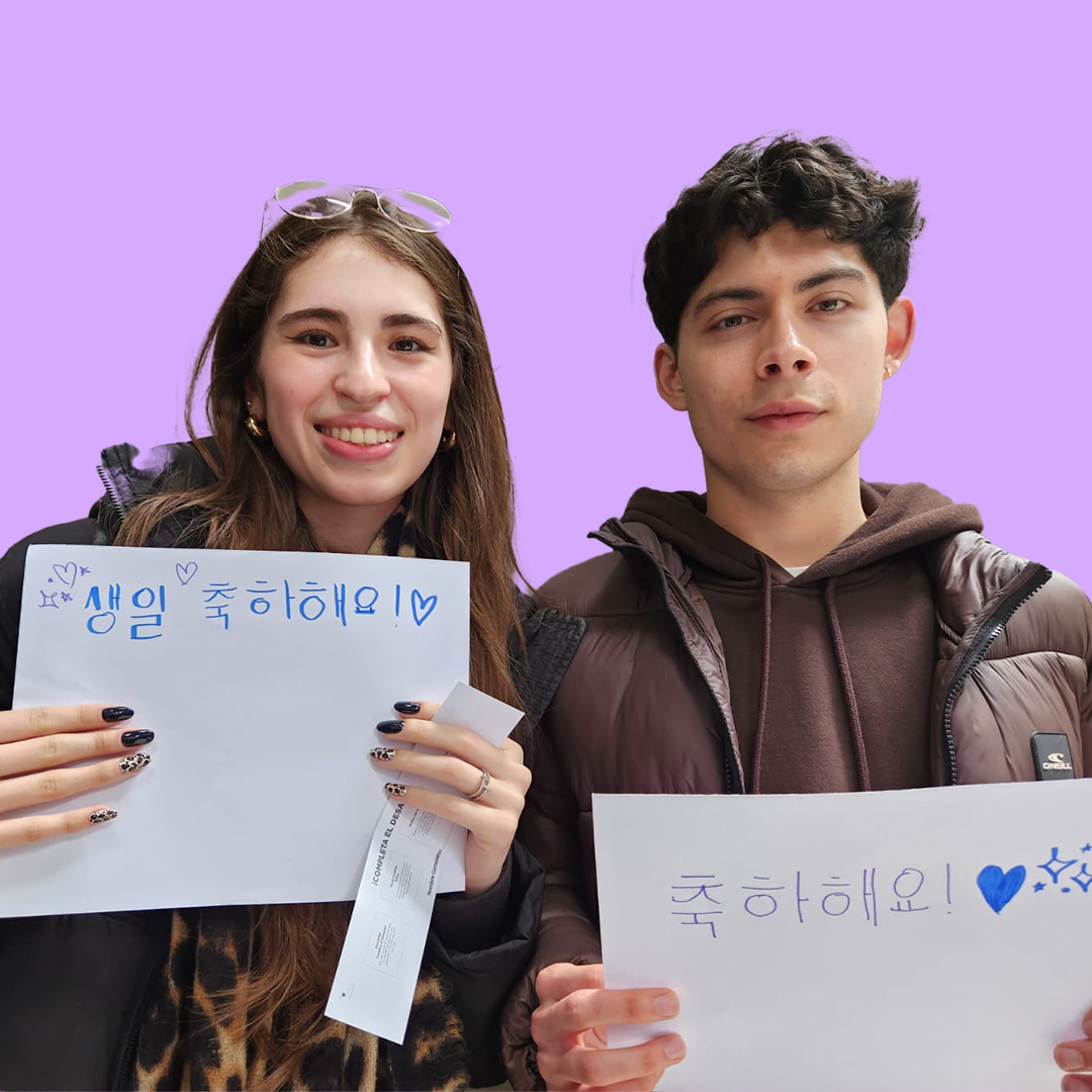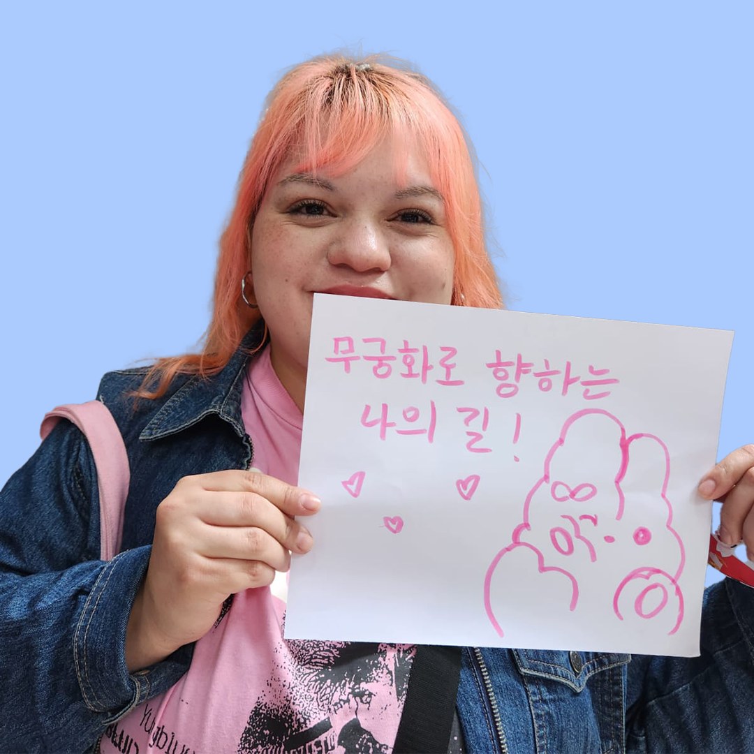 El mural "Día del Hangeul" es un lienzo digital que se creó a partir de las fotografías tomadas de los asistentes en el stand de pancartas durante la celebración del Día del Hangeul 2024. En cada pancarta, los participantes expresaron sus saludos y felicitaciones en conmemoración de los 578 años de la proclamación del alfabeto coreano, el hangeul. Este mural no solo celebra la rica historia del hangeul, sino que también refleja la participación activa y el entusiasmo de la comunidad en este importante evento cultural.