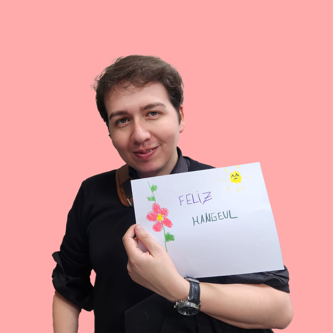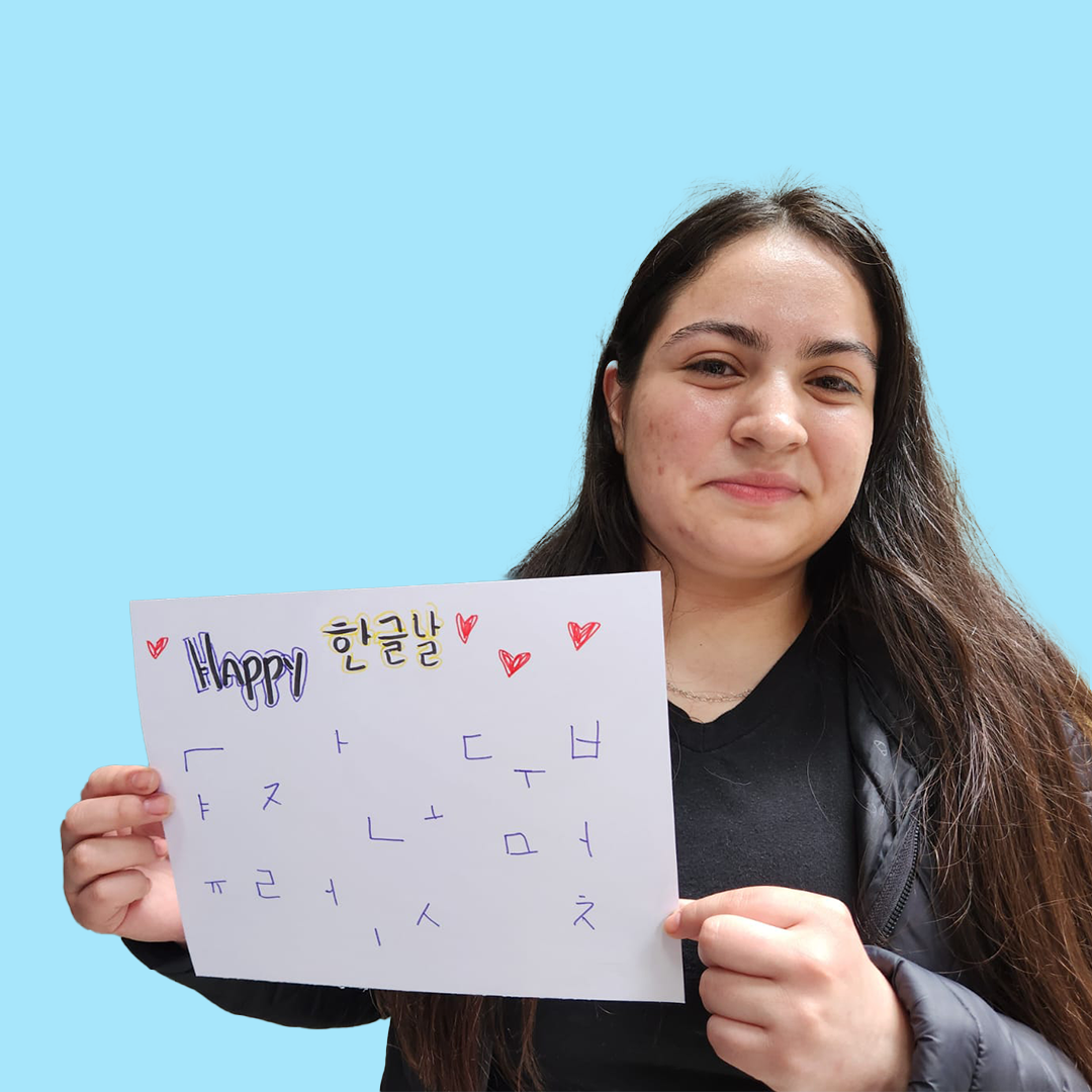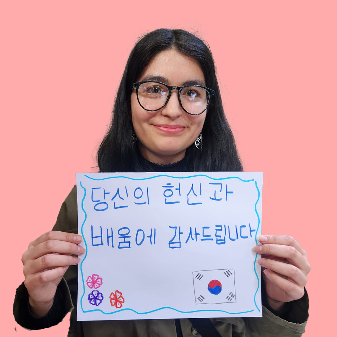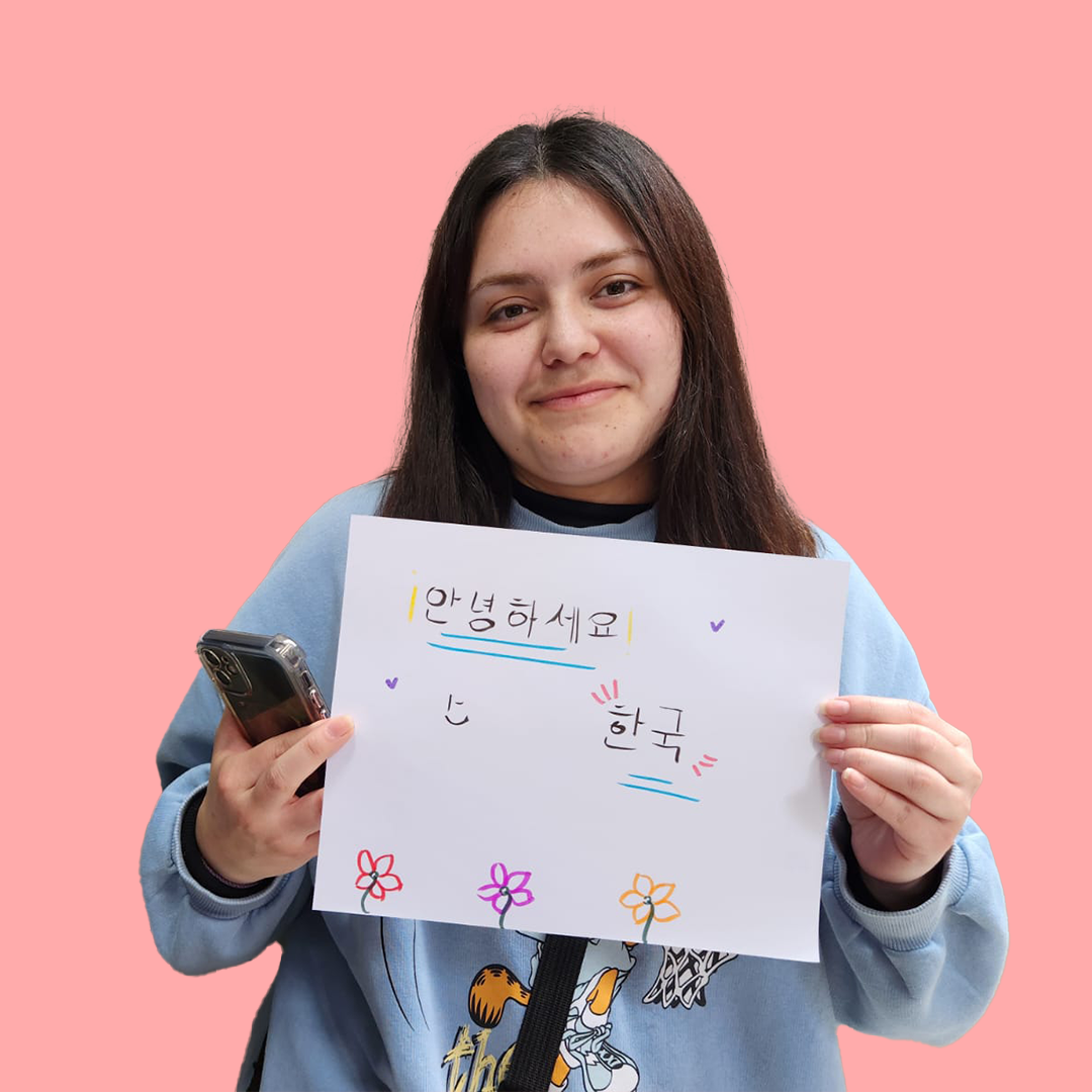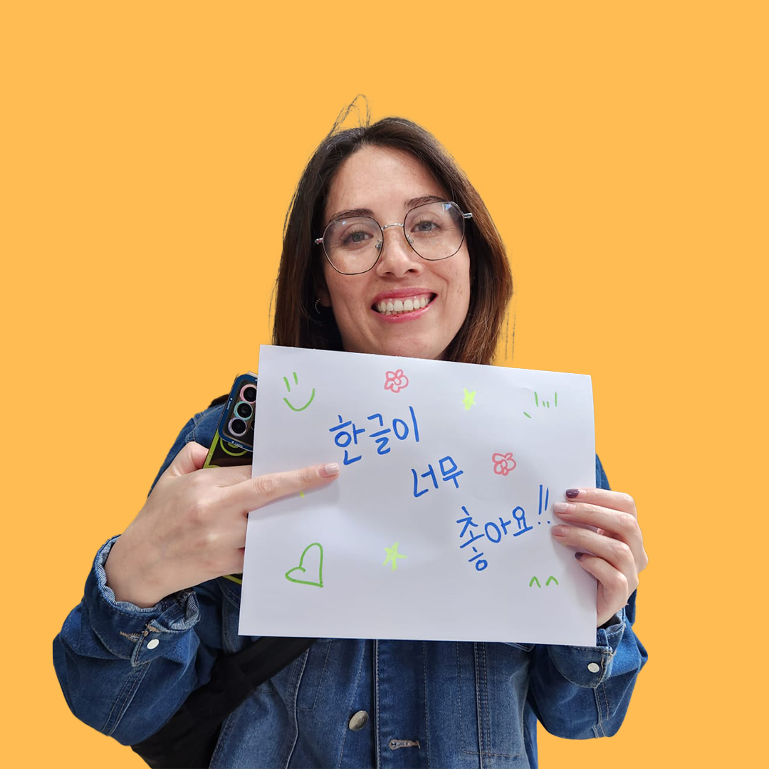 El mural "Día del Hangeul" es un lienzo digital que se creó a partir de las fotografías tomadas de los asistentes en el stand de pancartas durante la celebración del Día del Hangeul 2024. En cada pancarta, los participantes expresaron sus saludos y felicitaciones en conmemoración de los 578 años de la proclamación del alfabeto coreano, el hangeul. Este mural no solo celebra la rica historia del hangeul, sino que también refleja la participación activa y el entusiasmo de la comunidad en este importante evento cultural.