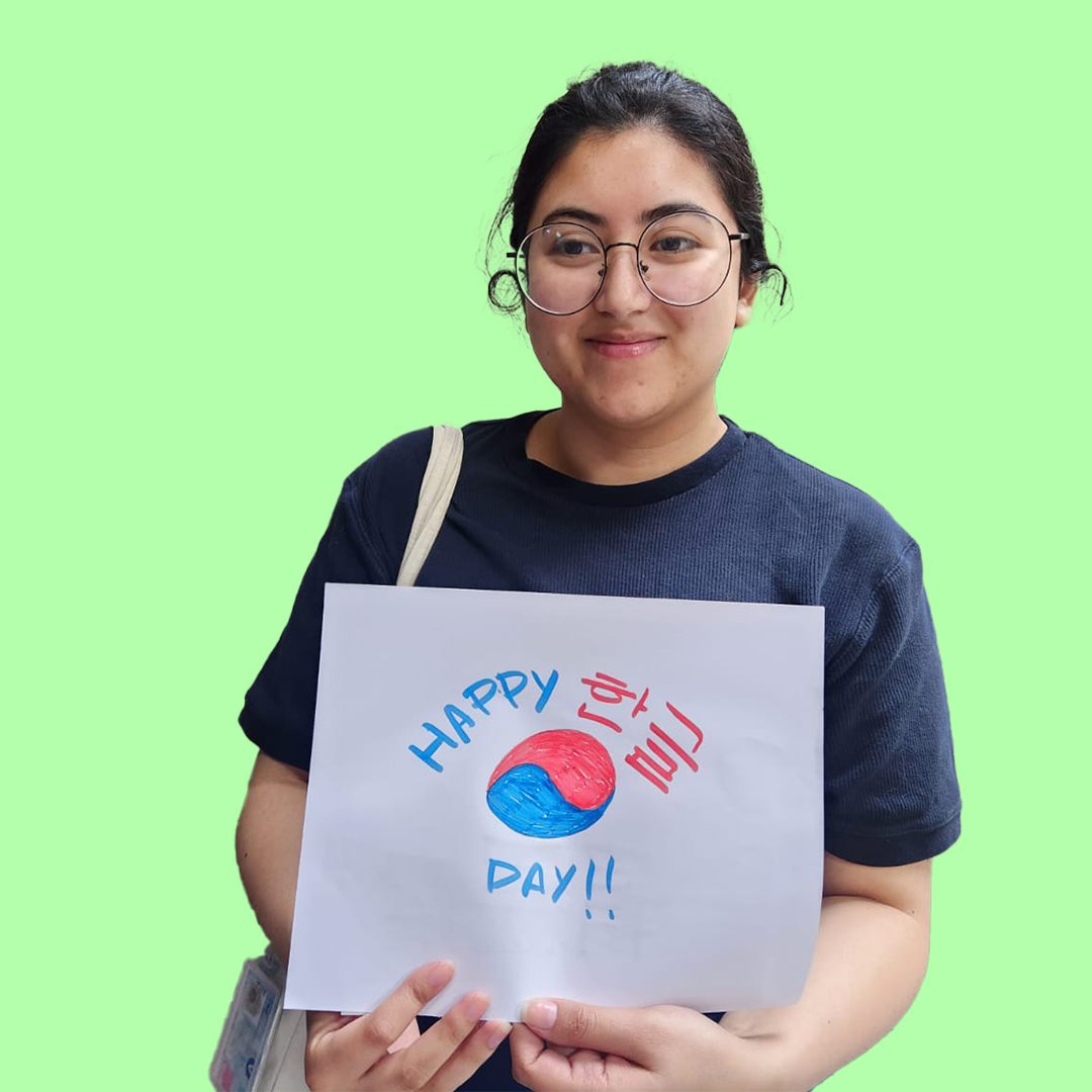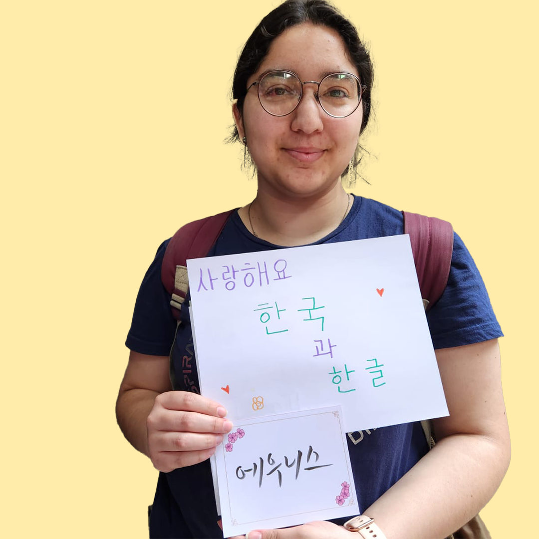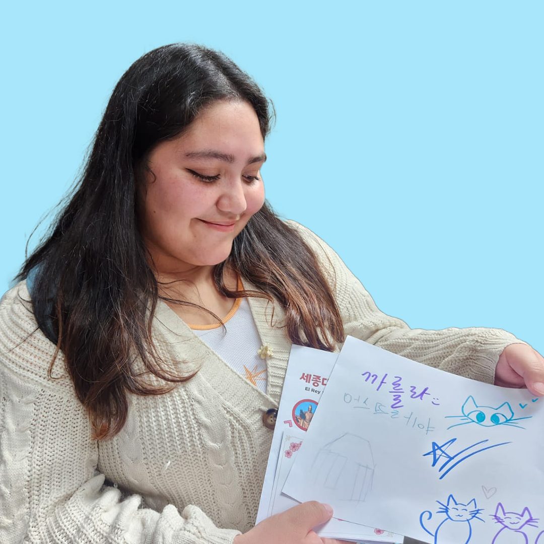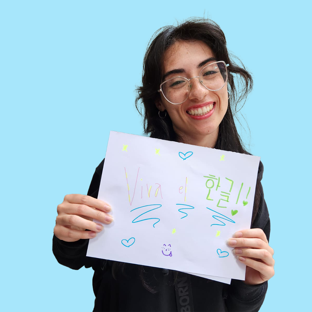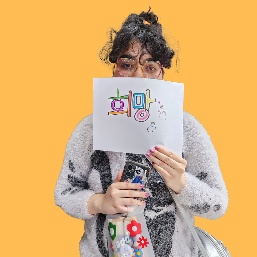 El mural "Día del Hangeul" es un lienzo digital que se creó a partir de las fotografías tomadas de los asistentes en el stand de pancartas durante la celebración del Día del Hangeul 2024. En cada pancarta, los participantes expresaron sus saludos y felicitaciones en conmemoración de los 578 años de la proclamación del alfabeto coreano, el hangeul. Este mural no solo celebra la rica historia del hangeul, sino que también refleja la participación activa y el entusiasmo de la comunidad en este importante evento cultural.