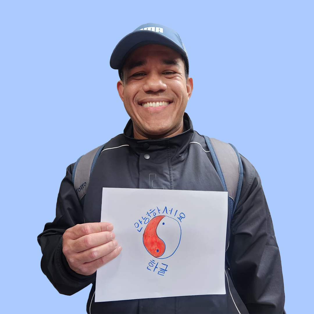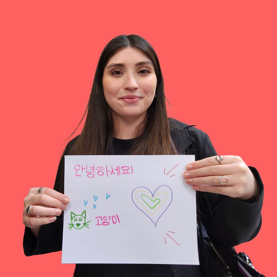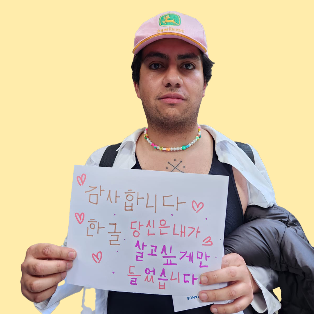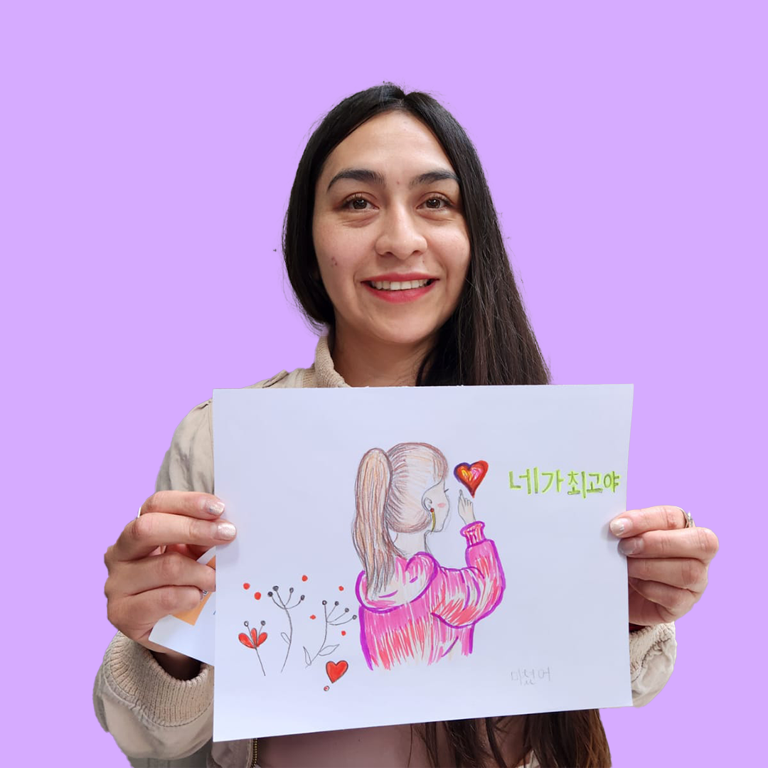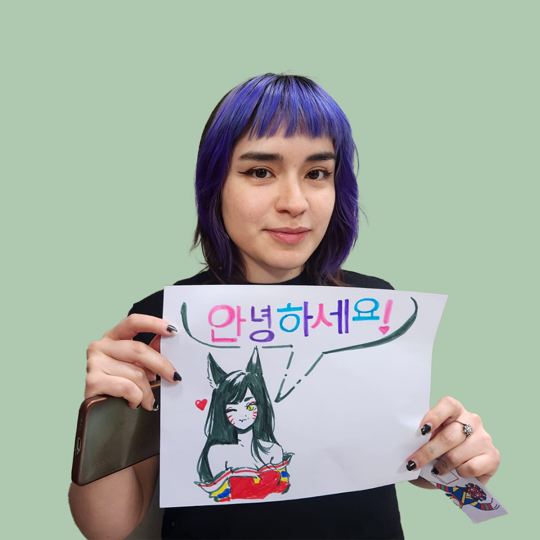 El mural "Día del Hangeul" es un lienzo digital que se creó a partir de las fotografías tomadas de los asistentes en el stand de pancartas durante la celebración del Día del Hangeul 2024. En cada pancarta, los participantes expresaron sus saludos y felicitaciones en conmemoración de los 578 años de la proclamación del alfabeto coreano, el hangeul. Este mural no solo celebra la rica historia del hangeul, sino que también refleja la participación activa y el entusiasmo de la comunidad en este importante evento cultural.