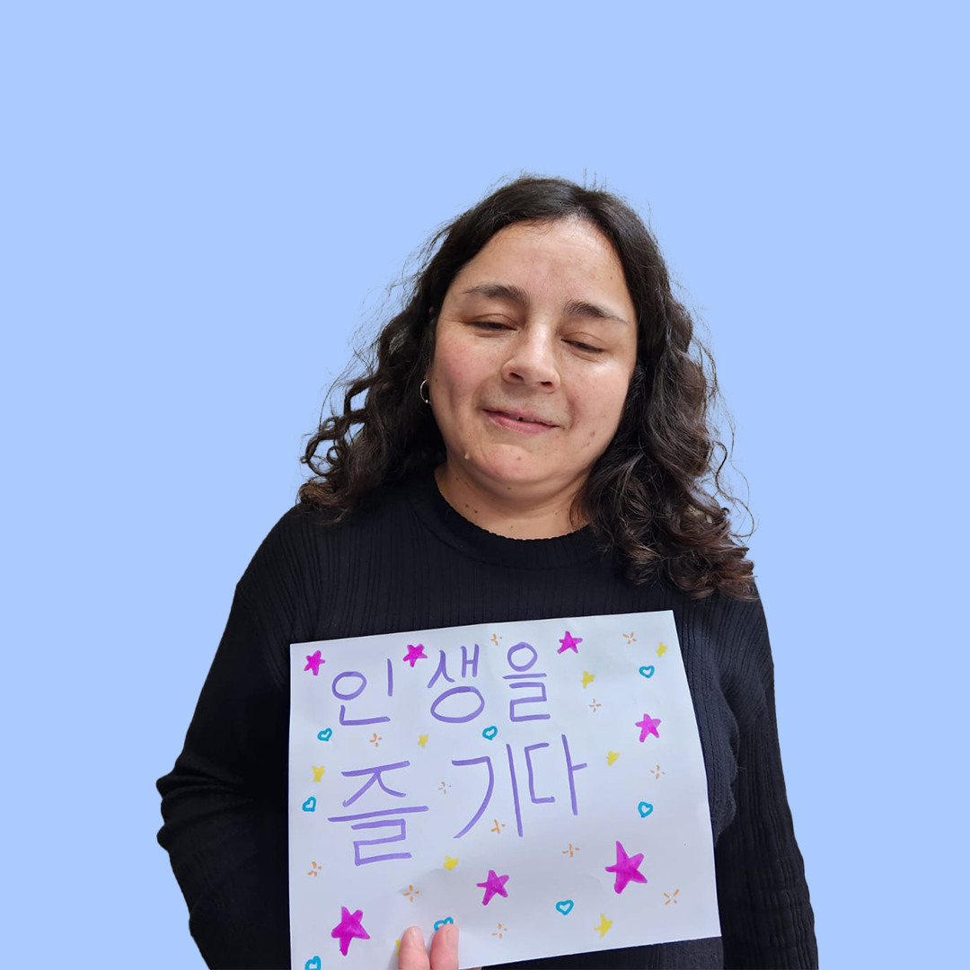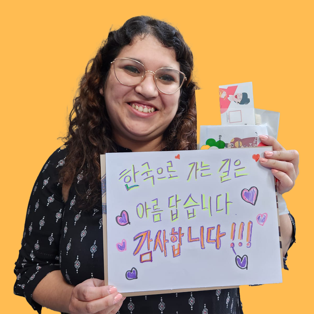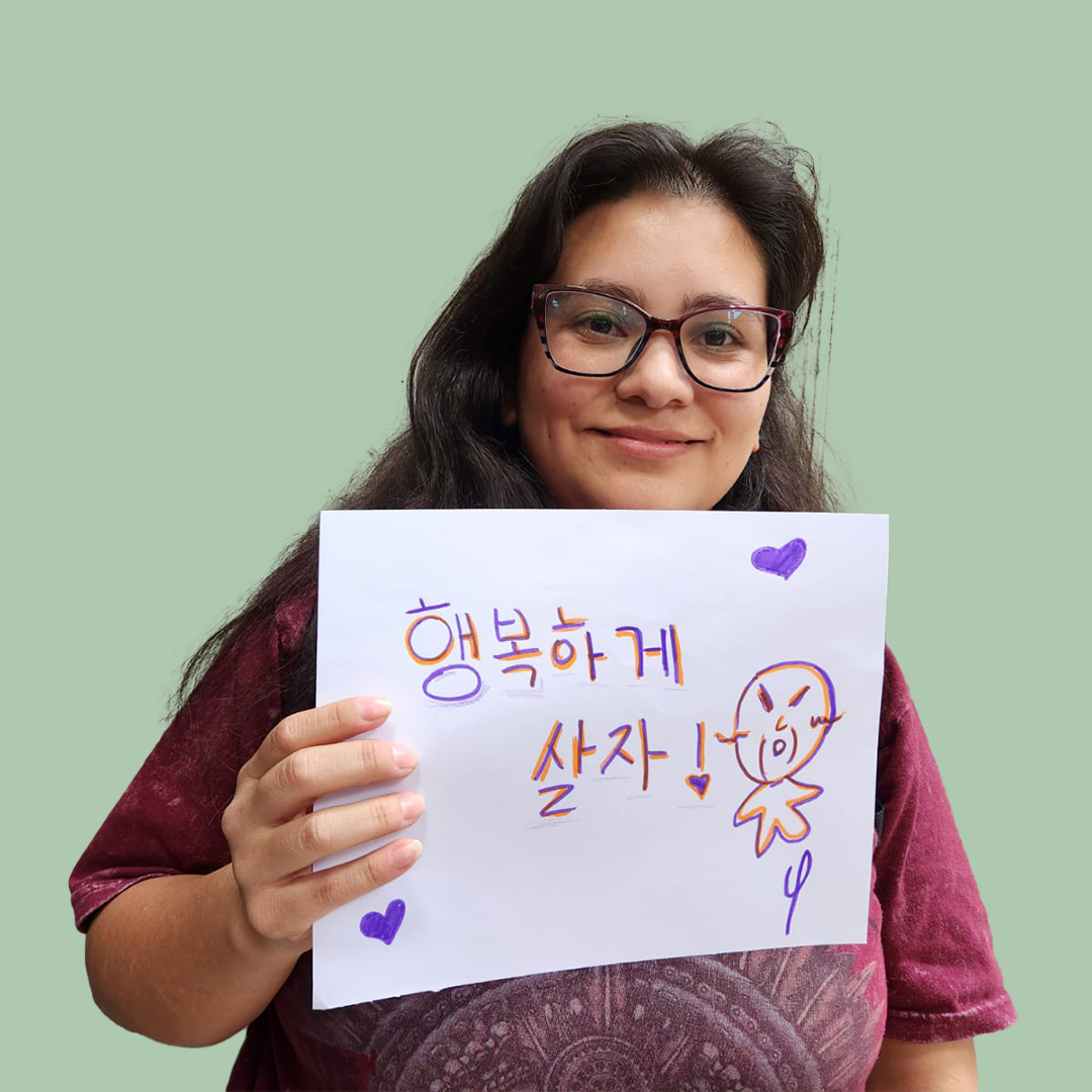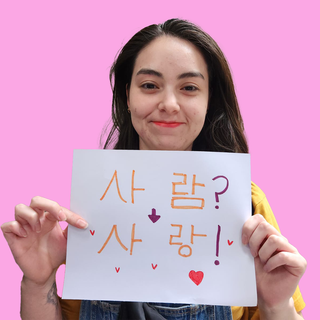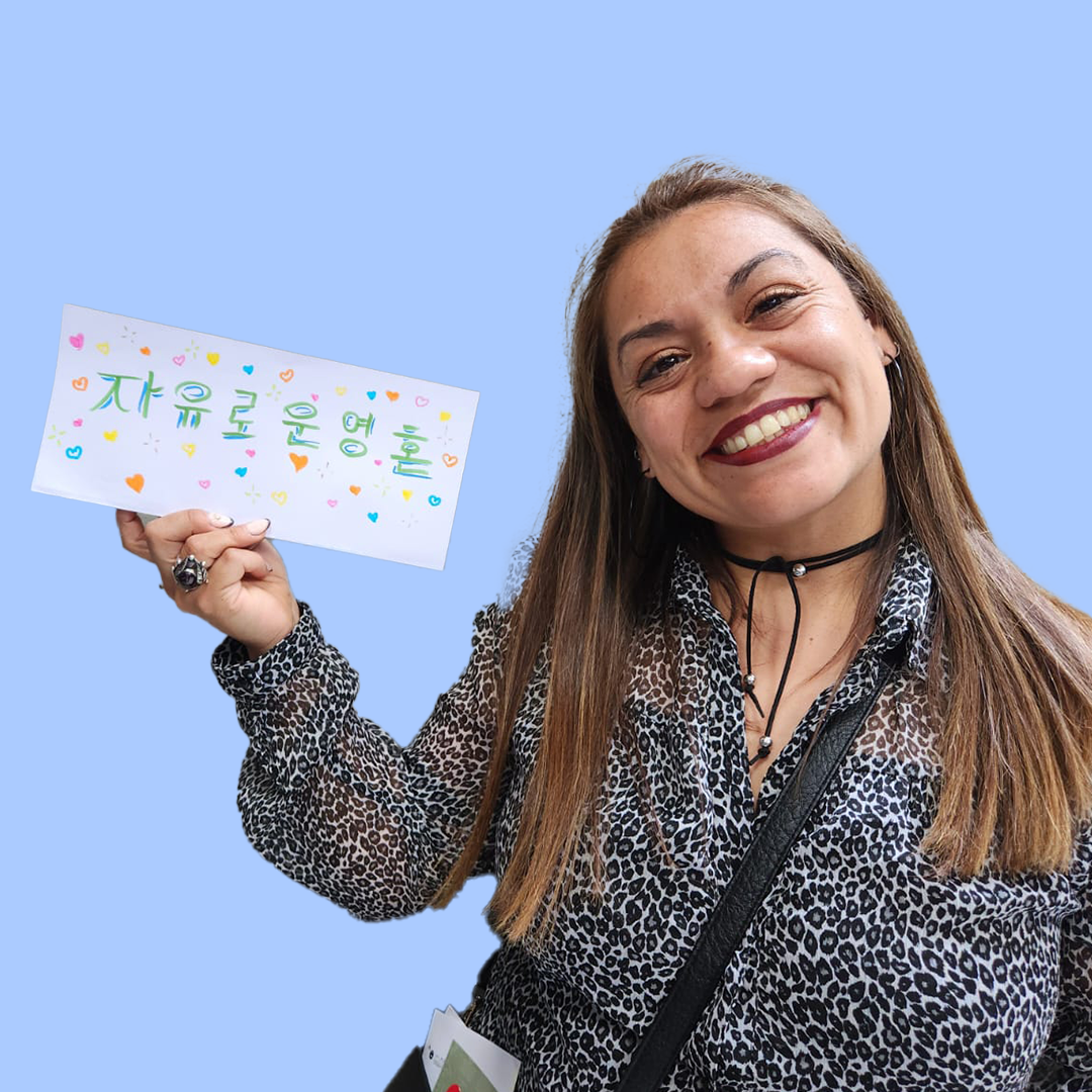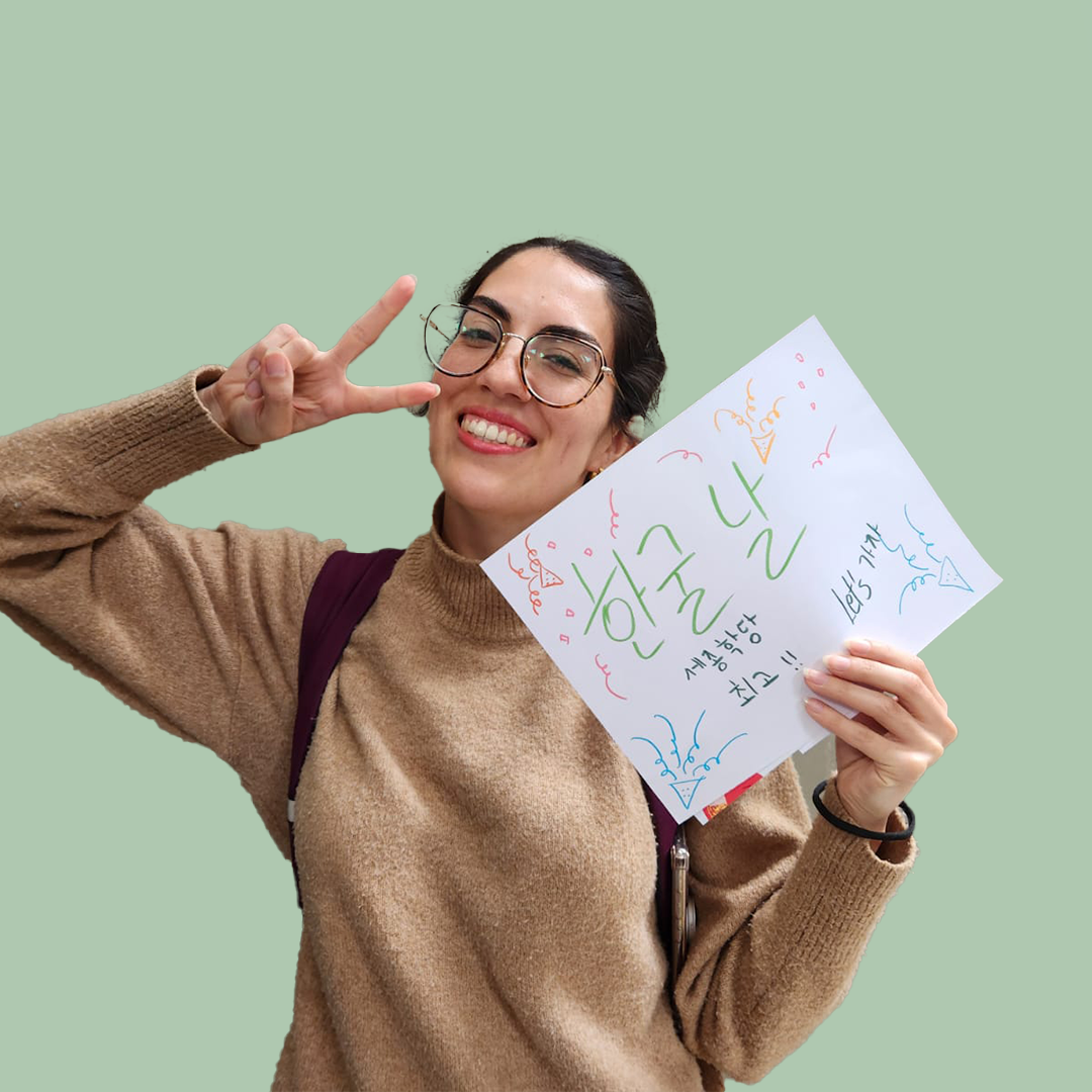El mural "Día del Hangeul" es un lienzo digital que se creó a partir de las fotografías tomadas de los asistentes en el stand de pancartas durante la celebración del Día del Hangeul 2024. En cada pancarta, los participantes expresaron sus saludos y felicitaciones en conmemoración de los 578 años de la proclamación del alfabeto coreano, el hangeul. Este mural no solo celebra la rica historia del hangeul, sino que también refleja la participación activa y el entusiasmo de la comunidad en este importante evento cultural.