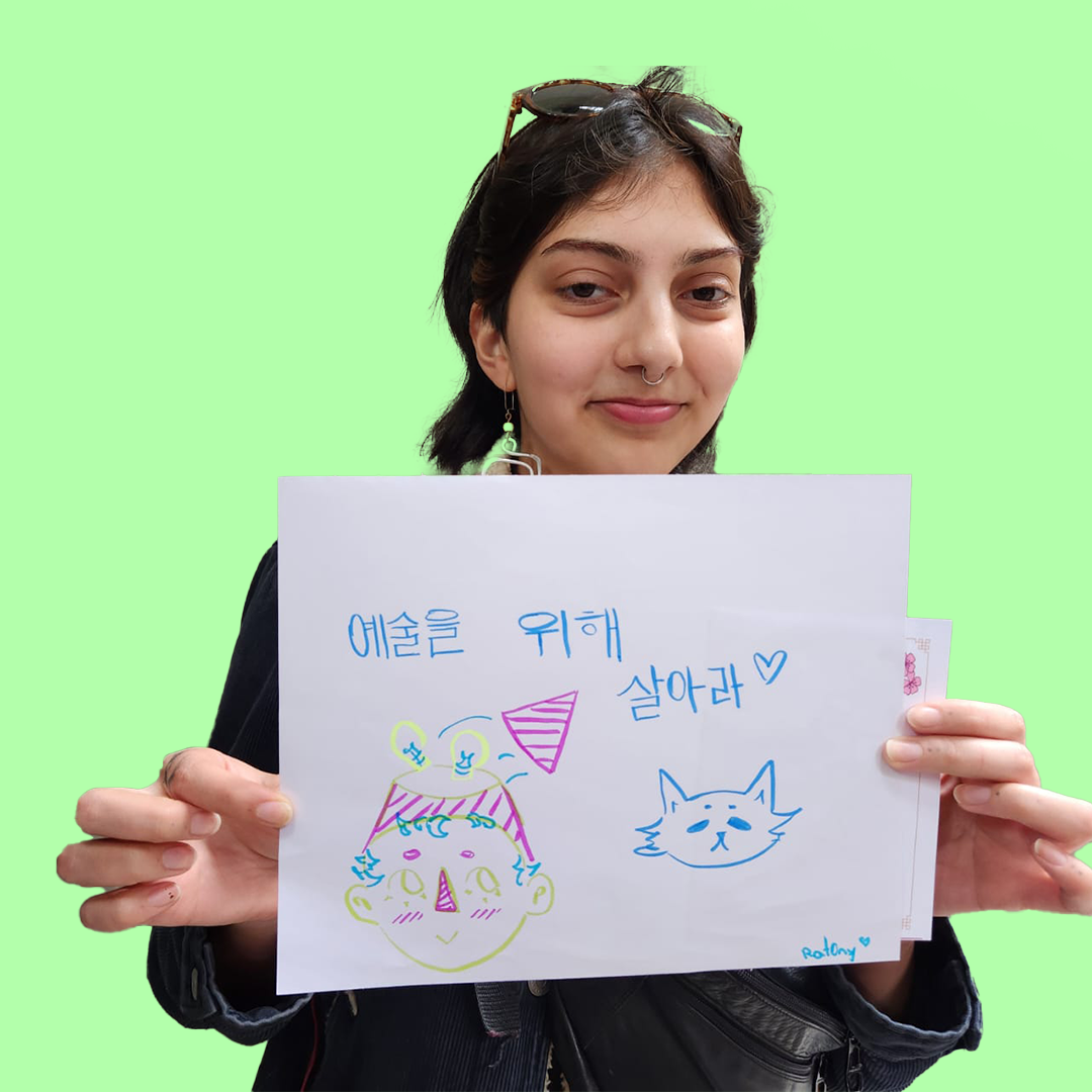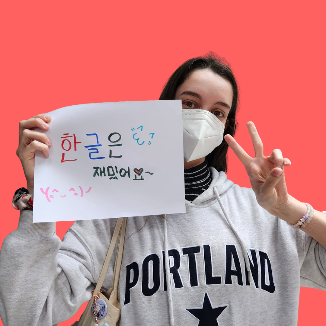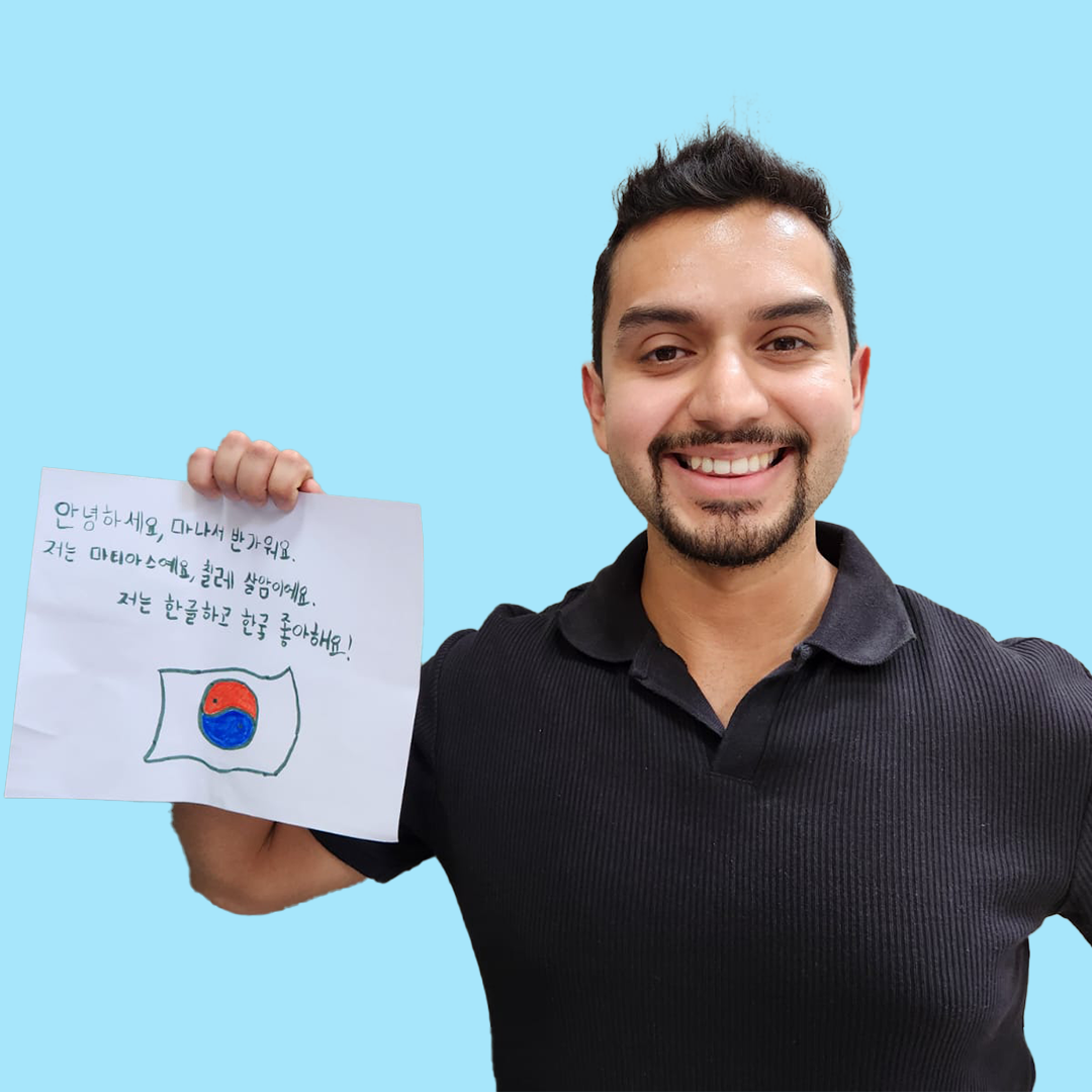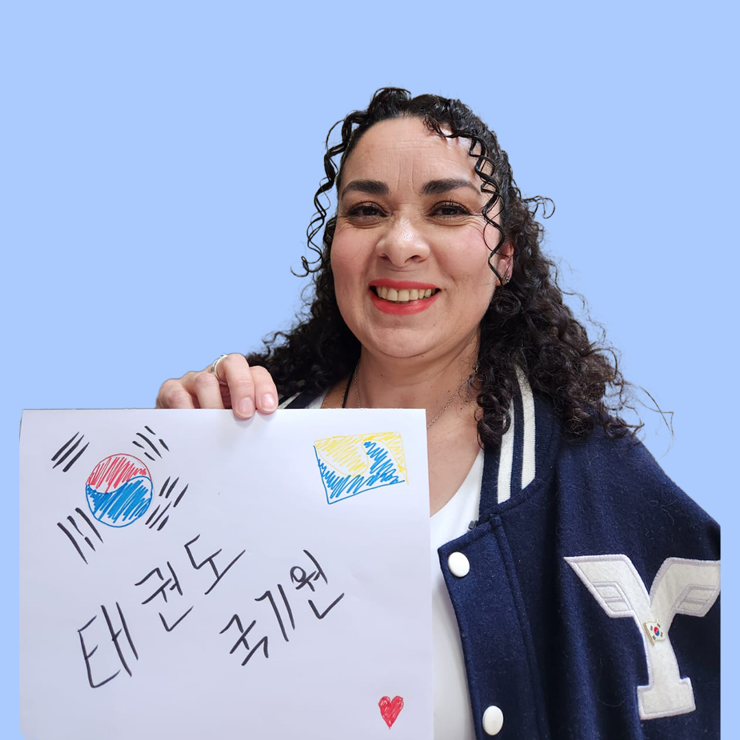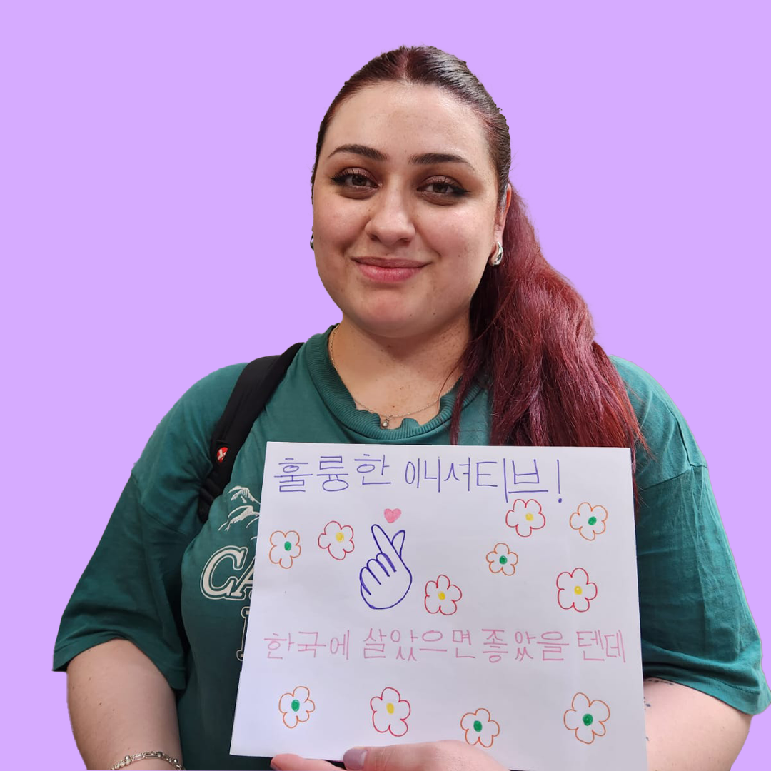 El mural "Día del Hangeul" es un lienzo digital que se creó a partir de las fotografías tomadas de los asistentes en el stand de pancartas durante la celebración del Día del Hangeul 2024. En cada pancarta, los participantes expresaron sus saludos y felicitaciones en conmemoración de los 578 años de la proclamación del alfabeto coreano, el hangeul. Este mural no solo celebra la rica historia del hangeul, sino que también refleja la participación activa y el entusiasmo de la comunidad en este importante evento cultural.