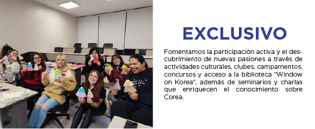 El Instituto Rey Sejong Santiago se destaca como una institución educativa líder en la enseñanza del idioma coreano y en la difusión de la cultura, gracias a sus cuatro sólidas fortalezas representadas por las letras "E": Excelencia, Eficiencia, Exclusivo y Económico. Estas cuatro fortalezas fundamentales posicionan al Instituto como una institución educativa que va más allá de las expectativas, forjando un camino hacia el crecimiento y la realización para cada uno de sus estudiantes.